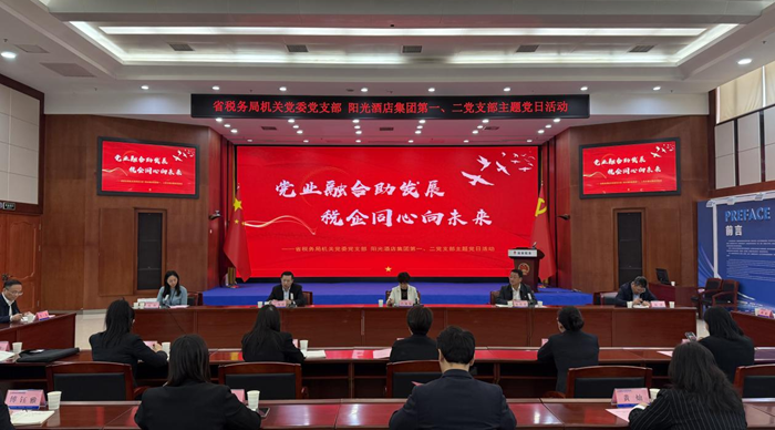 11月8日,陽光集團(tuán)第一、第二黨支部與省稅務(wù)局機(jī)關(guān)黨委黨支部聯(lián)合開展了主題為“黨業(yè)融合助發(fā)展,稅企同心向未來”的主題黨日活動。陽光集團(tuán)黨委書記、董事長肖艷菊,陽光集團(tuán)黨委副書記、總經(jīng)理丁偉民,省稅務(wù)局機(jī)關(guān)黨委常務(wù)副書記陳洪貴出席并講話,省稅務(wù)局機(jī)關(guān)黨委副書記楊輝主持活動。