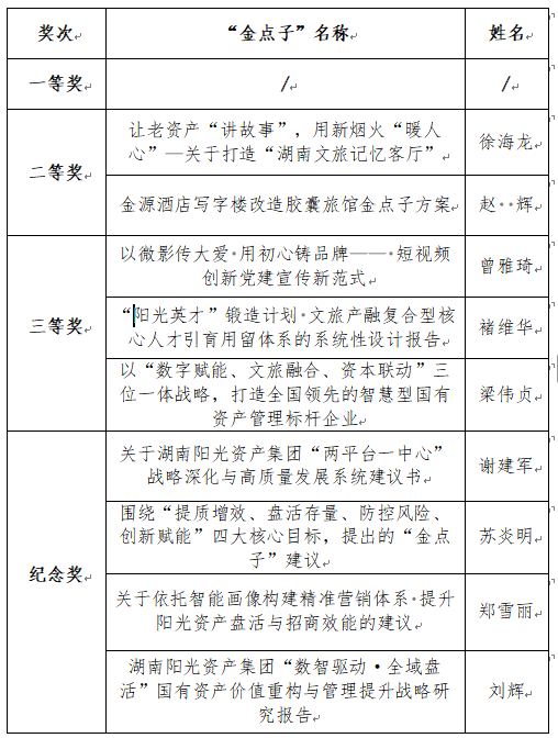 本次活動(dòng)共收到各類創(chuàng)意“金點(diǎn)子”319個(gè),經(jīng)工作小組初審復(fù)審篩選、評(píng)審委員終審、公司黨委集體研討,圍繞可行性、創(chuàng)新性、實(shí)用性、落地價(jià)值、經(jīng)濟(jì)效益、社會(huì)效益等維度嚴(yán)格把關(guān),最終擇優(yōu)評(píng)定出優(yōu)秀“金點(diǎn)子”9條,其中一等獎(jiǎng)空缺、二等獎(jiǎng)2名、三等獎(jiǎng)3名,紀(jì)念獎(jiǎng)4名?,F(xiàn)將評(píng)審結(jié)果公示如下: