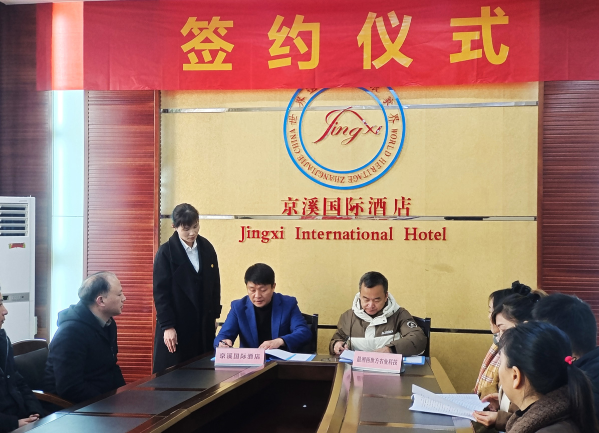 1月3日上午,陽光集團(tuán)旗下張家界京溪國際酒店有限公司(以下簡稱“京溪酒店”)與湖南最湘西世方農(nóng)業(yè)科技發(fā)展有限公司(以下簡稱“最湘西”)租賃合作簽約儀式圓滿舉行,京溪酒店執(zhí)行董事、總經(jīng)理易俊,最湘西董事長張浩帆出席儀式并簽約。