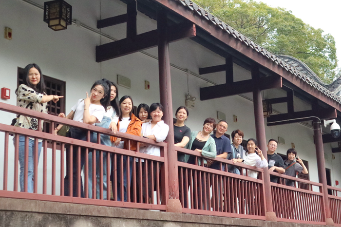 漫步淥江書院的小徑,逐級攀登,便邂逅了院中那株千年古樟的濃密綠蓋,身心頓時沉浸于寧靜之中。陽光斑駁地灑在青石小道上,書院的悠久歷史與歲月痕跡不禁令人感慨。會員們參觀了書院的講堂、內(nèi)廳、齋堂等,被這里厚重的歷史、深厚的中華傳統(tǒng)文化氛圍所感染。
