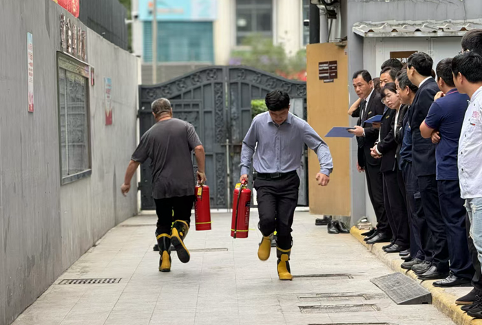 活動期間,酒店邀請了上海市長寧區(qū)消防救援總隊(duì)的專家授課,為參訓(xùn)人員帶來了一場關(guān)于酒店消防安全理論與實(shí)踐的精彩講座。實(shí)戰(zhàn)演練涵蓋快速穿戰(zhàn)斗服、攜帶5公斤滅火器進(jìn)行5×20米往返跑以及放水帶接水槍等項(xiàng)目。在教官的專業(yè)指導(dǎo)下,全體員工與租賃單位代表緊密配合,積極參與,每個動作都力求標(biāo)準(zhǔn),真正做到學(xué)以致用,為進(jìn)博會期間酒店的消防安全保駕護(hù)航。