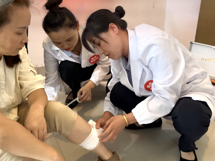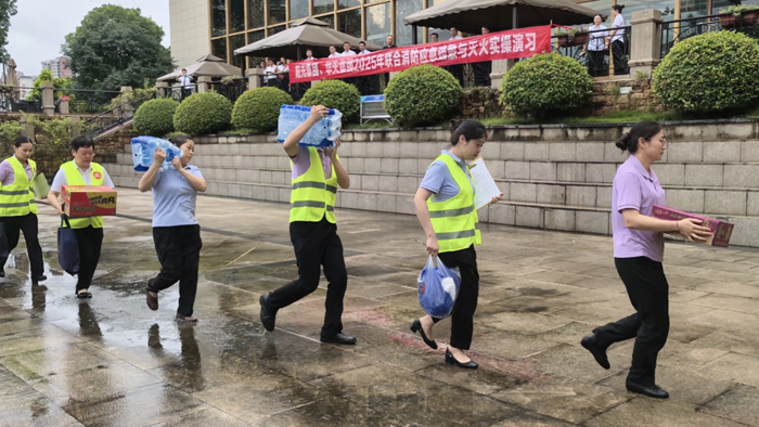 各應(yīng)急救援小組按照預(yù)案分工,高效開展滅火、疏散、警戒、救援等一系列行動(dòng)。滅火行動(dòng)組反應(yīng)迅速,立即穿戴消防作戰(zhàn)服、攜帶滅火器材趕赴火場(chǎng)控制火勢(shì);疏散組臨危不亂,有序引導(dǎo)住客沿消防通道撤離,并做好情緒安撫;醫(yī)療救援組和后勤保障組沉著冷靜,成功營救“受傷人員”和“電梯被困人員”。隨著火勢(shì)擴(kuò)大,總指揮下達(dá)“全員疏散”指令,全體人員迅速捂住口鼻、低姿彎腰,沿著預(yù)定的疏散路線,僅用2分鐘安全撤離至指定集合點(diǎn)。