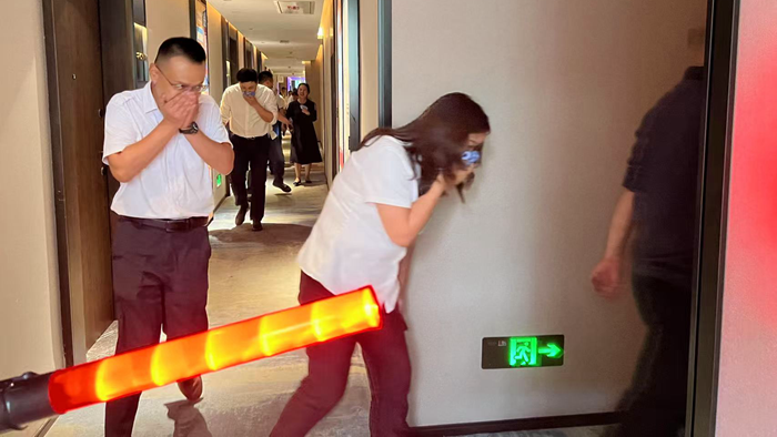 隨后模擬火災(zāi)疏散逃生進(jìn)行實(shí)操演練。景四洋公司安全維穩(wěn)部迅速組織,引導(dǎo)在場(chǎng)人員按照既定疏散路線有序撤離,展現(xiàn)了高效的應(yīng)急反應(yīng)能力。參訓(xùn)人員積極參與滅火實(shí)操,親身體驗(yàn)了滅火過(guò)程,進(jìn)一步提升了實(shí)戰(zhàn)技能。