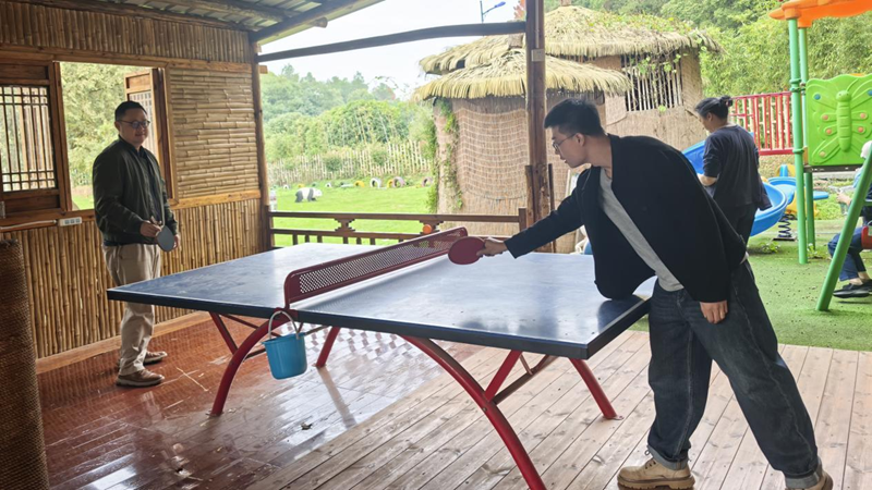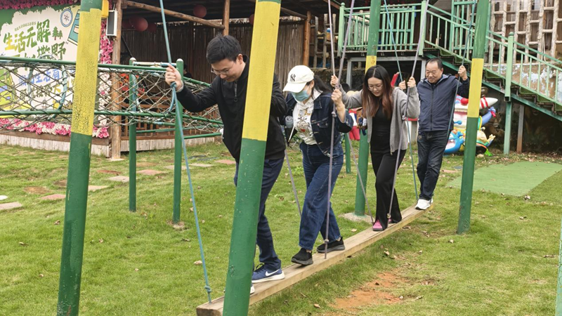 協(xié)作類拓展項目的開啟,瞬間點燃了大家的熱情。多人平衡木項目中,隊員們兩兩相扶、步伐同步,每一次順利通過,都伴隨著陣陣歡呼;輪胎攀爬墻前,大家自發(fā)分工,每一個向上攀登的身影,都離不開團(tuán)隊的堅實支撐;乒乓球桌上,兩兩對壘,既有競技的緊張,也有彼此切磋的默契,歡聲笑語縈繞賽場。每一個協(xié)作瞬間都凝聚著信任與力量,生動詮釋了“凝心聚力”的核心內(nèi)涵。