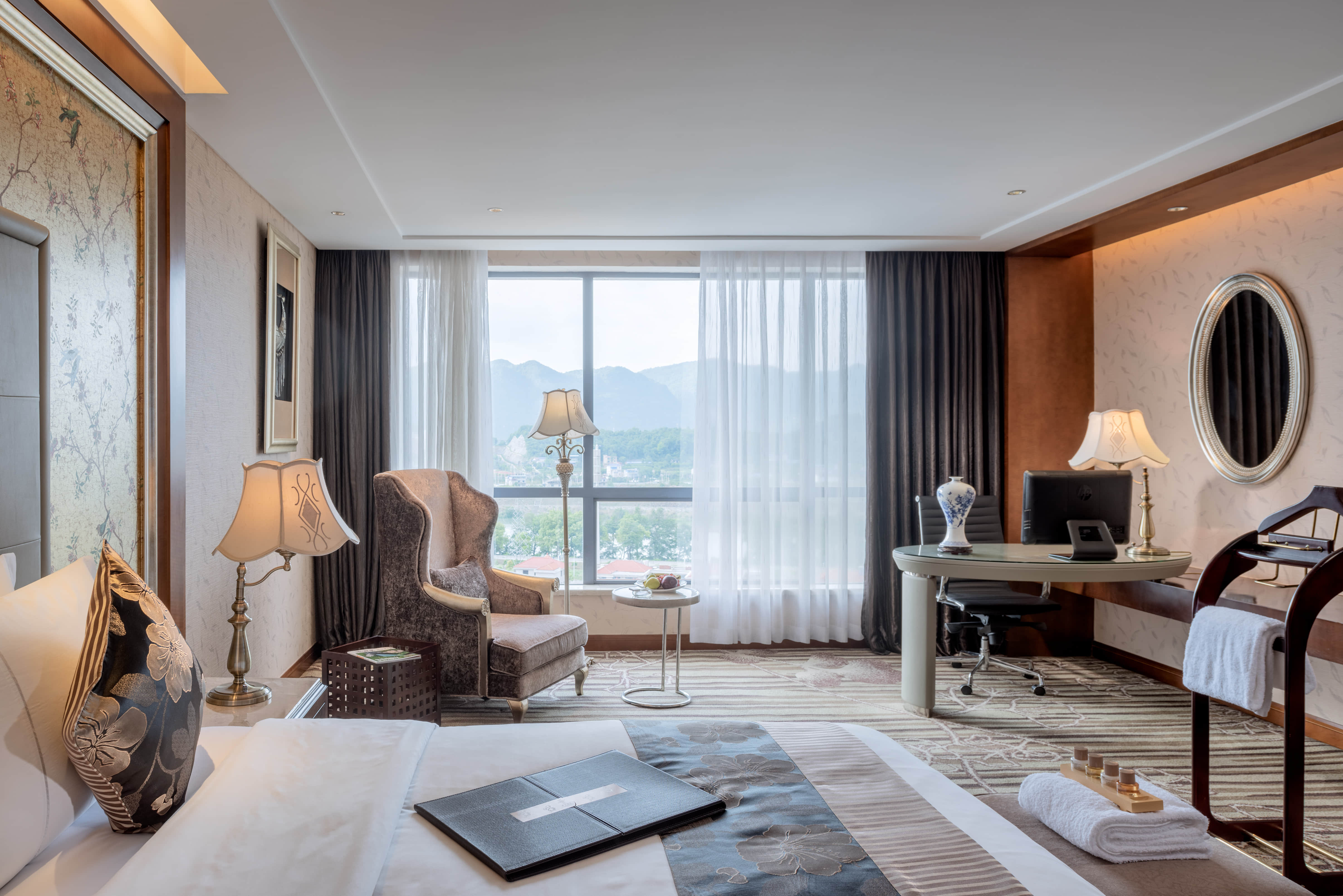 在建筑風格上,酒店建筑巧妙融合了現(xiàn)代時尚元素和湘西苗族、土家族的民族文化元素,奢華中彰顯質(zhì)樸,極具地域文化風尚。開業(yè)以來,酒店曾接待過多位黨和國家領(lǐng)導(dǎo)人及社會名流,酒店優(yōu)質(zhì)的服務(wù)得到了國內(nèi)外賓客的一致好評,是張家界市展現(xiàn)旅游接待能力的重要形象窗口,現(xiàn)委托華天酒店集團股份有限公司經(jīng)營管理。